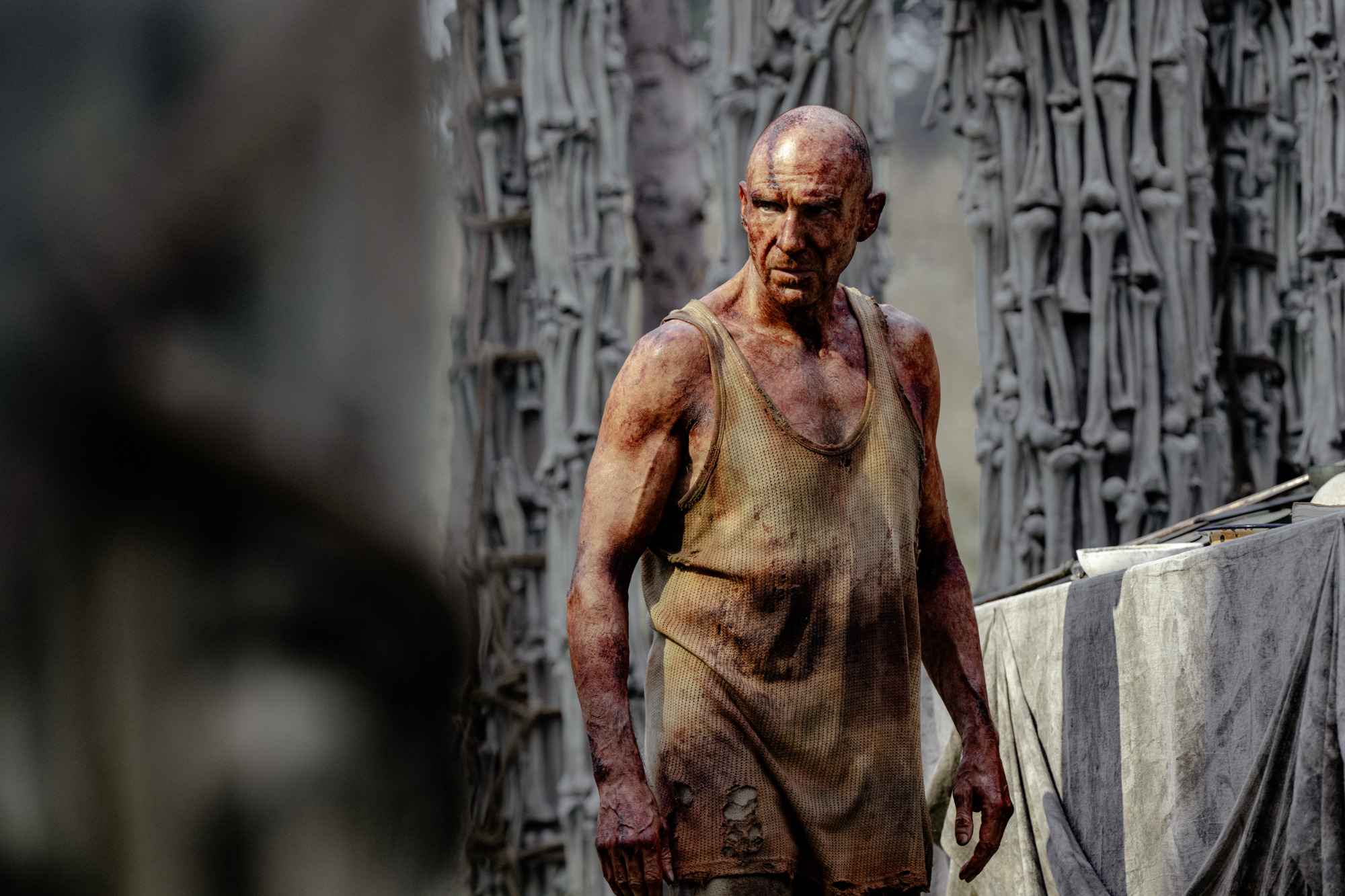 Aber dann passiert etwas Interessantes, wenn man dem Film etwas Raum gibt. Mit etwas Abstand wirkt dieser fragmentarische Stil genau andersherum. Die Schnitte, die Fetzen an Informationen, das, was wir nicht sehen – all das setzt sich im Kopf nach und nach zusammen. Die Fragmente wirken. Boyle nutzt die kompakten Smartphones für Kamerafahrten und Winkel, die mit einer ARRI oder IMAX-Kamera schlicht unmöglich wären. Er klebt an den Protagonisten, er wirft uns mitten in das Chaos. Und genau das ist es, was sehr gute Horrorfilme von okay’en Genrebeiträgen unterscheidet: Die Form folgt der Funktion. Die Unruhe des Bildes spiegelt die innere Unruhe einer Welt wider, die seit fast drei Jahrzehnten keine Ordnung mehr kennt. Boyle verarbeitet Covid-Motive, Brexit-Themen im Subtext und wenn dann Archiv- und alte Filmaufnahmen eingestreut werden, entsteht eine Atmosphäre, die so dicht und bedrückend ist, dass es Frösteln auslöst. Inhaltlich entfernt sich Autor Garland dabei weit von den militärischen Strukturen des zweiten Teils. 28 Years Later ist im Kern eine zutiefst bewegende Coming-of-Age-Geschichte, die sich auf eine zentrale Figur konzentriert: Spike. Der von Alfie Williams unglaublich gut gespielte Teenager steht an der Schwelle zum Erwachsenwerden und begleitet seinen Vater auf das von Infizierten verseuchte Festland. Was als eine Art dystopisches Männlichkeitsritual geplant war, wird zum Albtraum. Williams ist dabei ein echter Glücksgriff für das Casting. Er trägt die emotionale Last des Films auf seinen jungen Schultern, spielt nuanciert und fängt das omnipräsente Motiv des Verlusts in jeder seiner Gesten ein. Erstaunlich, dass man nach dem Film denkt, man habe ihn schon irgendwo gesehen, was für die meisten nicht der Fall sein dürfte. Doch im Umfeld seiner Figur zeigt sich auch die erste große Schwäche des Drehbuchs: Die Elternrollen. Während Jodie Comer als Mutter zwar physisch alles gibt, bleibt ihre Figur ein Rätsel. In einer Szene erledigt sie nachts einen Infizierten mit gefühlten “Superskills”, lautlos und effizient. Eine Erklärung dafür bleibt uns der Film schuldig. Wo hat sie das gelernt? Warum ist sie zur Kampfmaschine mutiert? Noch schlimmer trifft es aber Aaron Taylor-Johnson. Während Comer zumindest darstellerisch abliefern darf, ist Taylor-Johnsons Vaterfigur ein Abziehbild: eindimensional, klischeehaft und völlig unterbelichtet. Er ist der stoische Beschützer, den wir gefühlt hundertmal gesehen haben, ohne Ecken und Kanten. Er wirkt wie ein (noch dazu unsympathischer) Fremdkörper in einer sonst differenzierten Welt. Wie gut dass es noch einen Ralph Fiennes gibt: Sein Auftritt als Dr. Ian Kelson ist meisterlich und adelt das Horrorgenre. Fiennes schafft es, mit wenigen Blicken und Aktionen die ganze Tragödie der vergangenen 28 Jahre zu transportieren. Wahnsinn, wie sehr man an seinen Lippen hängt, während er sich um Spike und seine Mutter kümmert.