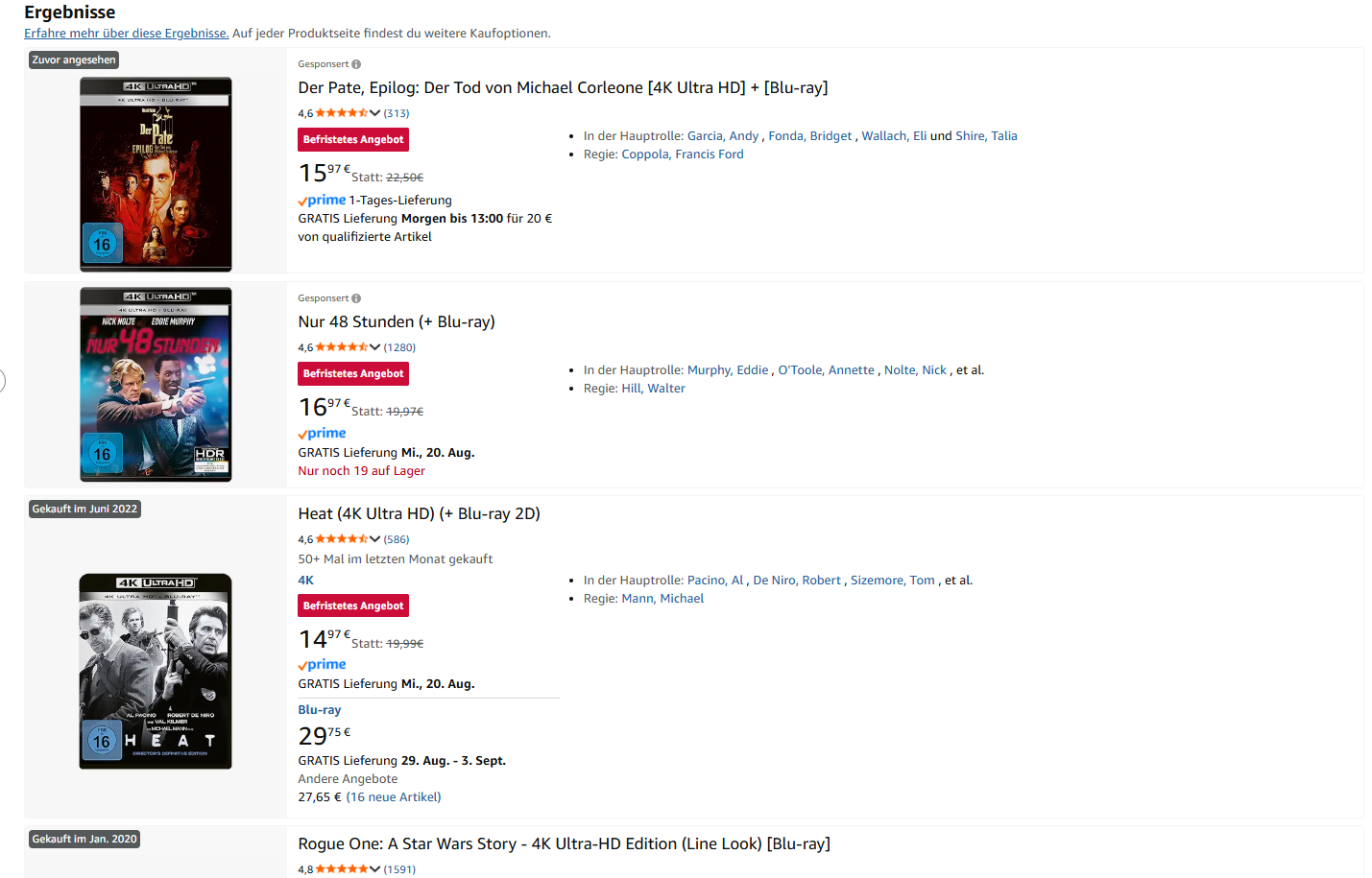 4K Blu-ray bei Amazon teils drastisch reduziert
