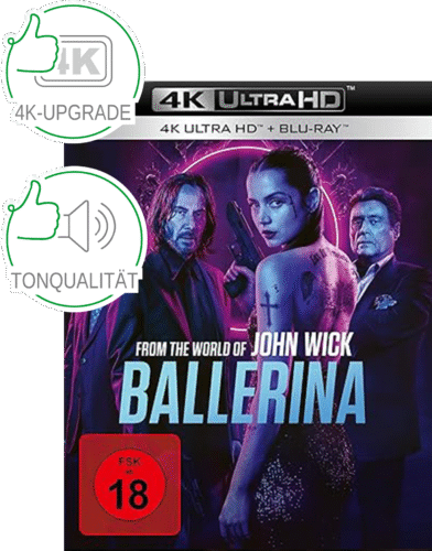 Ballerina versucht nicht einfach, John Wick zu kopieren. Es zeigt, dass Stil über Substanz oft funktioniert, wenn der Stil konsistent und ästhetisch durchdacht ist. Aber eben: Wenn Substanz auf der Strecke bleibt (etwa eine tiefere Charakterzeichnung der Nebenfiguren oder weniger klischeehafte Motivationen), dann fühlt sich das Gesamtbild wie ein schickes Kleid an, das gut aussieht auf der Bühne, aber draußen schnell Schatten wirft. Die UHD Blu-ray wirft hingegen ihre Schatten über die Blu-ray, da sie weniger artifiziell und detaillierter ist. Auch die Farben sind kräftiger. Beim Ton darf man beide Sprachfassungen beglückwünschen, auch wenn die deutsche Fassung im LFE-Kanal minimal beschnitten ist.