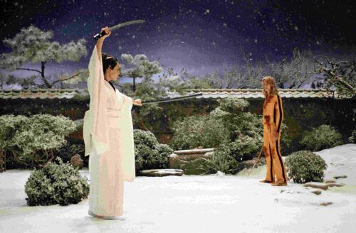 Quentin Tarantino ist zurück. Und wie. Nachdem er mit Reservoir Dogs das moderne Independentkino neu justiert, mit Pulp Fiction den Popkulturkanon umgeschrieben und mit Jackie Brown bewiesen hatte, dass er auch eine ruhigere und erwachsenere Gangart beherrscht, wurde es zunächst still um das Enfant terrible Hollywoods. Ganze sechs Jahre mussten Fans warten, bis der Meister des Zitatenkinos zurückkehrte. Dass er während dieser Pause gedanklich an einer Racheballade kaute, die schon während Pulp Fiction Gestalt annahm, wussten ein paar Insider. Als er dann mit dem Drehen begann, war das Skript mittlerweile auf über 220 Seiten angewachsen. Studioboss Harvey Weinstein wollte kürzen. Tarantino weigerte sich. Der Kompromiss war ein Novum in der modernen Blockbuster-Geschichte: Man zerlegte das Racheepos einfach in zwei volle Spielfilme. Eine gute Entscheidung. Denn Kill Bill ist eine Obsession, die Tarantino über Jahre mit sich herumtrug, eine Hommage an all jene VHS-Schätze, die er in der Videothek nicht nur verlieh, sondern inhaliert hatte. Samurai Kino, Shaw-Brothers-Martial-Arts-Opern, Spaghetti Western, Pinky Violence, Exploitation und Animationsblutbäder. All das verwob er zu einem Werk, das für nur einen Kinofilm schlicht zu viel war. Vol. 1 wurde die Klinge. Vol. 2 wurde das Herz. Doch bevor es ans Herz geht, muss die Klinge zuerst durch die Leinwand schneiden. Es ist Tarantinos tiefe Verbeugung vor dem Eastern-Kino. Hier wird nicht lange diskutiert. Hier wird gestorben. Und zwar in Massen. Inspiriert von Vorbildern wie Toshiya Fujitas Lady Snowblood (aus dem er das grundlegende Rache-Motiv und den visuellen Stil entlieh) oder Kinji Fukasakus Battle Royale (aus dem er Chiaki Kuriyama als Gogo Yubari rekrutierte), entfesselt Tarantino ein visuelles Feuerwerk. Kameramann Robert Richardson fing die Action in berauschenden Bildern ein, die zwischen Grindhouse-Schmutz und hochglanzpolierter Ästhetik wechseln.