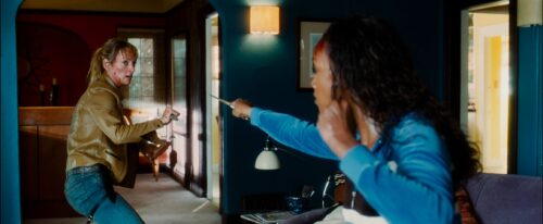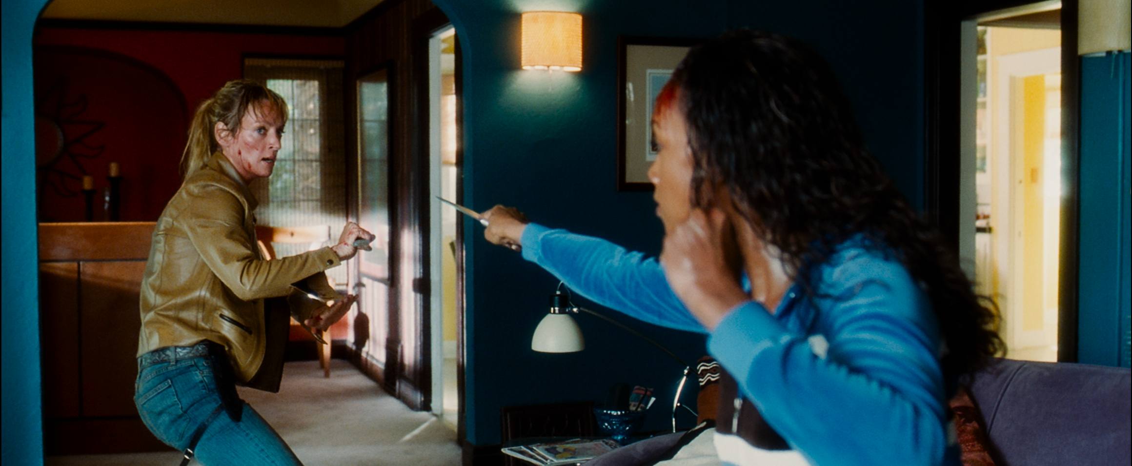 Die bisherige Blu-ray von Kill Bill Vol. 1 war wirklich keine gute Scheibe. Sie hat durchweg sichtbare Probleme. Und die fangen auch direkt zu Beginn an. Während der Schwarzweiß-Szene der verletzten Braut sind die hellen Bereiche im Gesicht sichtbar überstrahlt. Und diese teils deutlichen bis krassen Überstrahlungen bleiben durch den ganzen Film hindurch. Wer nach fünf Minuten den Himmel (oder irgendetwas darin) erkennt, der werfe die erste Wolke. Zeichnung im Schein von Lampen oder auf weißen Hauswänden sucht man ebenfalls vergeblich. Die Filmkörnung der unterschiedlichen, verwendeten Stocks wurde mit großer Wahrscheinlichkeit leicht gefiltert. Teils möglicherweise, um im Nachhinein neue Körnung drüberzulegen. Das lässt bspw. die Szenen zwischen der Braut und Copperhead ein wenig inhomogen erscheinen. Die Körnung scheint sich nicht konsistent zu bewegen, sondern wirkt eher wie Schneefall, der sich im Vordergrund bewegt. Außerdem gibt es eine ganz leichte Neigung zu Schmiereffekten schon bei der alten BD. An anderer Stelle wirkt die Körnung halbwegs filmisch und verhält sich nicht ganz so anorganisch. Wer außerdem auf poppige Farben steht, wird mit der Blu-ray entsprechend Tarantinos Stilisierungen bedient. Allerdings werden diese poppigen Farben nur selten gut aufgelöst. Und manchmal brechen sie auch komplett ein, wie bspw. beim blauen Pfleger-Shirt nach 28’50, das beim Verlassen des Raumes unschöne braune Kompressionsartefakte aufweist. In puncto Schärfe sind es vorwiegend Close-ups, die überzeugen können. Halbtotale und Totale lassen hingegen deutlich nach. Dass Tarantino aber Uma Thurmans für den alten Fetischisten sichtlich schönstes Körperteil außerordentlich scharf einfing, dürfte niemanden wundern (33’18). Das Farbrauschen während der Animationssequenz nach 37 Minuten ist hingegen nicht allzu hübsch.