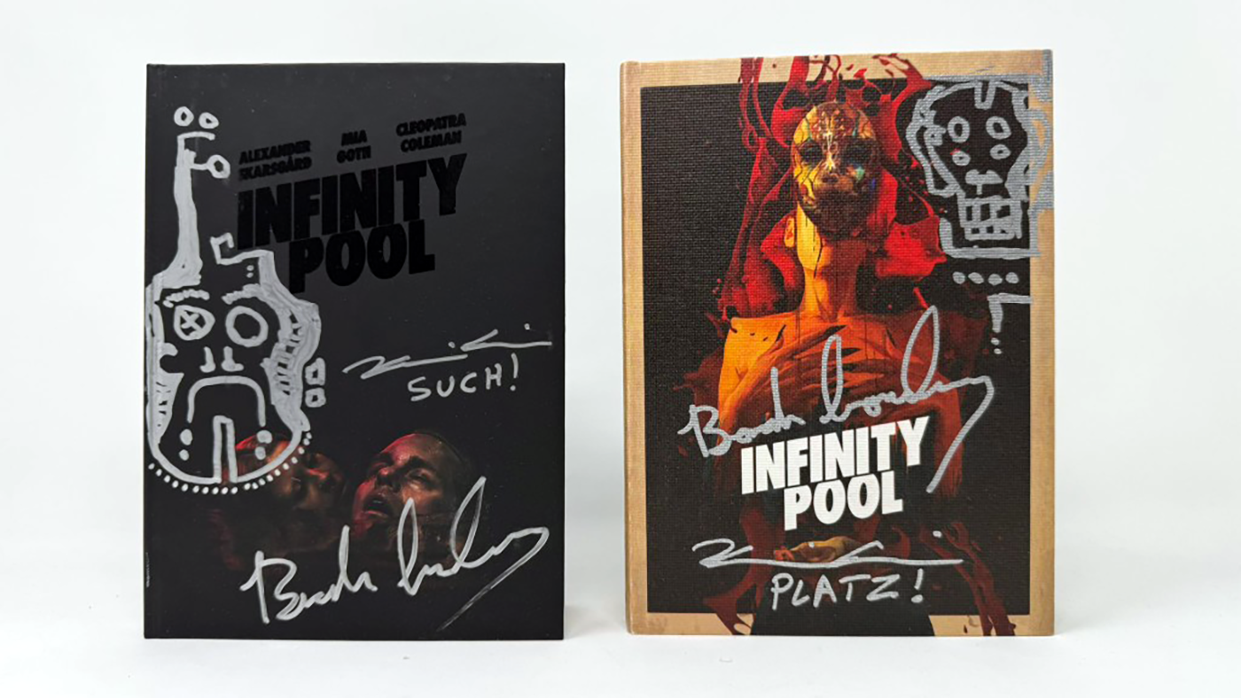 Turbine stiftet ein ganz besonderes Paket. Zum einen gibt’s noch einmal die 4K UHD Blu-ray von DAYLIGHT sowie ein 4K-BD-Steelbook von HELLRAISER. Obendrauf kommt ein absolutes Sammlerstück in Form eines von Brandon Cronenberg persönlich künstlerisch verzierten und signierten Mediabooks zu INFINITY POOL (Abbildung zeigt nicht DAS Exemplar, das Gewinner-Exemplar wird aber ähnlich ausfallen).