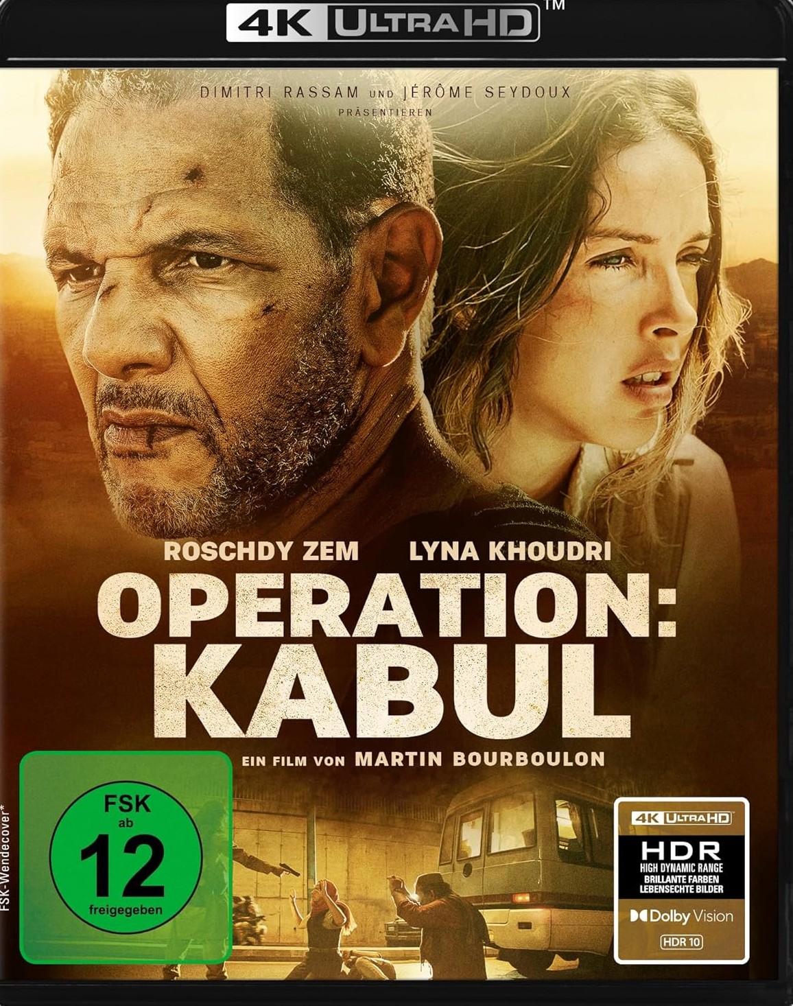 Der digital gedrehte Operation: Kabul wurde mit der ARRI Alexa 35 bei 4.6K aufgenommen und kam über ein 4K-DI auf die Disk. Capelight liefert ihn mit HDR10 und Dolby Vision sowie einem im Rahmen von Rec.2020 erweiterten Farbraum als Single-4K-Disk ohne Blu-ray aus. Im laufenden Bild zeigen sich keinerlei Probleme – ganz im Gegenteil. Die 4K-Disk gehört zu einer der besten der letzten Monate was die Bildqualität angeht. Weder ist sie zu dunkel und fällt damit nicht unter die Kategorie “kann nur zur nachtschlafener Zeit geschaut werden”, noch geht das Bild in die Knie, wenn helle oder schwarze Bildflächen im Bild sind. Die Durchzeichnung ist gerade im Schwarz sehr gut, während es auf der anderen Seite schön satt schwarz bleibt. Die Farben sind der Atmosphäre verpflichtet und orientieren sich dauerhaft an einer warmen, braundominierten Palette entlang. Roschdy Zems Gesicht wirkt fast bronzefarben, wenn es in der Sonne glänzt. Wenn es mal Farbtupfer gibt, werden diese sensationell kräftig wiedergegeben – bspw. das rote Kopftuch rund um Minute 15-16. Herausragend gut ist außerdem das Encoding. Das feine Digitalrauschen wird absolut souverän repliziert und vermatscht selbst in den dunklen Szenen niemals. Die Tageslichtmomente sind prima aufgelöst und das Rauschen zeigt sich ebenso ungefiltert wie fein. Close-ups geraten knackscharf und nächtliche Lampen werden mit hoher Dynamik wiedergegeben. Einziges Manko (wenn man so will) sind die etwas eingegrenzten Schärfebereiche der Objektive, die vor allem im unteren Bereich Unschärfen verursachen. Das allerdings ist produktionsbedingt.
