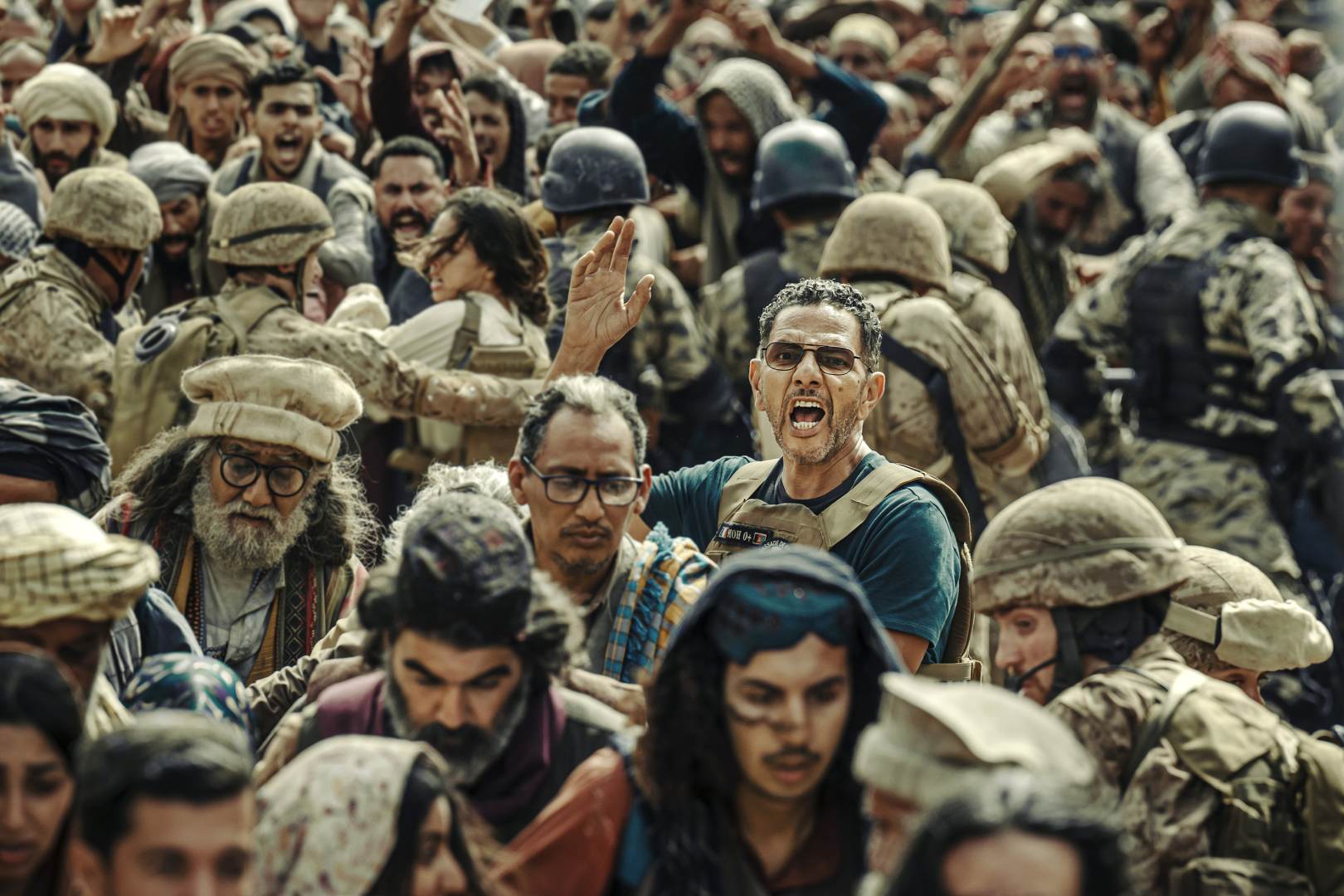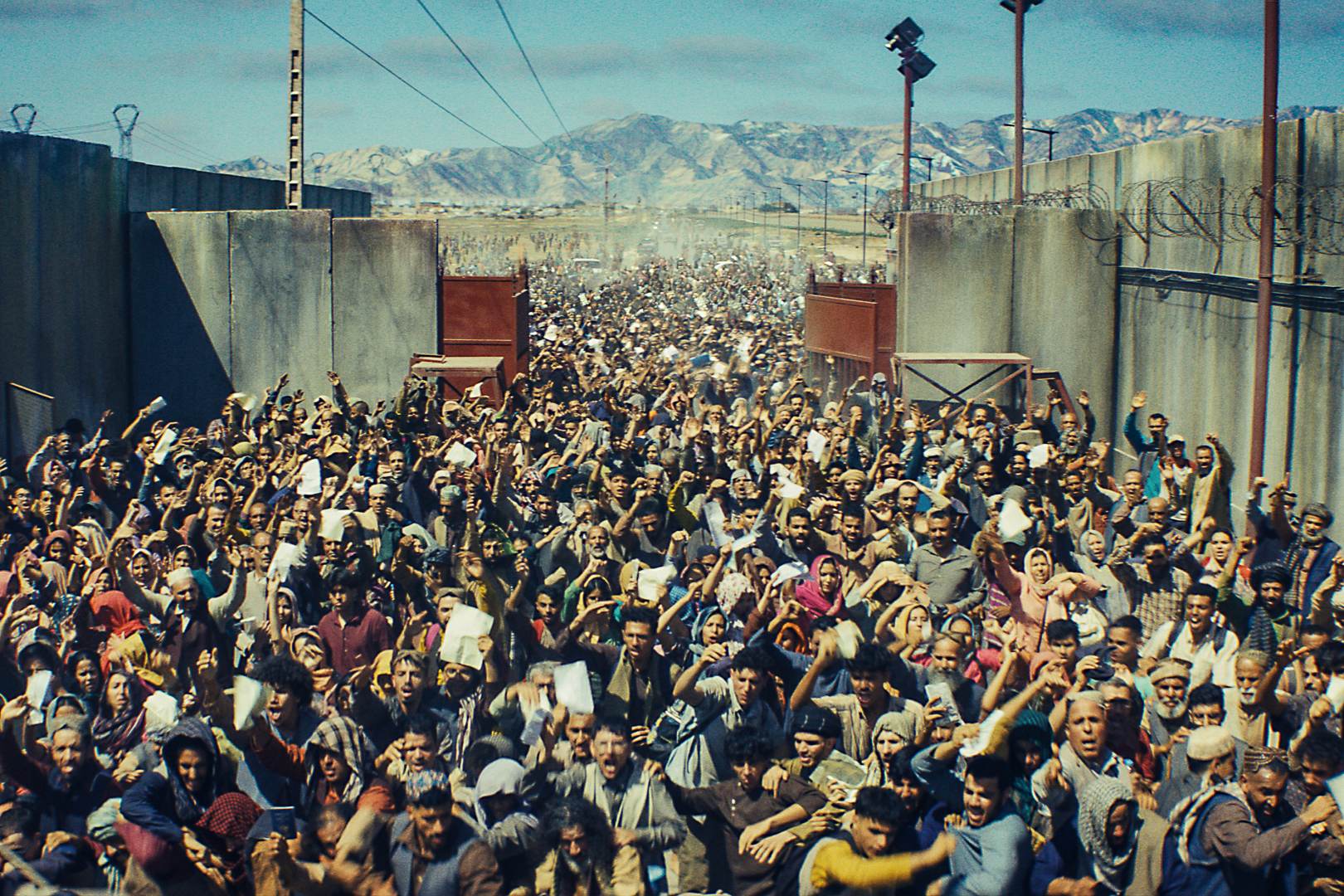 Und diese Authentizität spürt man. Bourboulons Film beginnt atemlos und wirft uns nach einer kurzen News-Sequenz direkt hinein in das hektische und hochgradig gefährliche Geschehen. Die Kamera weicht Bida kaum von der Seite und geht mit ihm durch die engen Büros, raus auf die staubige Straße, wieder zurück, aufs Dach der Botschaft und rein ins gepanzerte Auto. Was US-Genrefilme zuletzt oft nur mit viel CGI-Getöse vermochten, schafft Bourboulon hier mit scheinbarer Leichtigkeit: Den Zuschauer von der ersten Sekunde an abzuholen und durch die fiebrige Inszenierung regelrecht zu packen. Internationale Kritiker ziehen nicht umsonst Parallelen zur viszeralen Intensität amerikanischer Militärthriller à la Black Hawk Down. Wirklich Luft zum Atmen hat man erstmals nach gut 20 Minuten, wenn die Botschaft ihre schweren Türen für die ersten Flüchtlinge öffnet. Doch zuvor fährt man noch gemeinsam mit Mohamed durch die sich immer mehr mit verzweifelten Menschen füllenden Straßen, die bereits von den Taliban belagert werden. Dabei geizt Operation: Kabul nicht mit brutalen Bildern und weiß, wie man beim Zuschauer Emotionen erzeugt. Das ist bisweilen ein wenig arg plakativ, wenn auf die afghanischen Bürger eingeprügelt oder sie auf offener Straße erschossen werden. Auch das Rüberreichen eines Babys in die Hände des Botschaftssicherheitspersonals wirkt cineastisch etwas gewollt. Die Tatsache, dass der echte Mohamed Bida diese apokalyptischen Szenen weitgehend so in seinen Berichten geschildert hat, verleiht den Bildern ein brutales Gewicht. Ein absoluter Triumph bleibt außerdem die Besetzung, die den Film mühelos über seine erzählerischen Stolpersteine. Die einnehmende Präsenz von Roschdy Zem (der als Bida unglaubliches Charisma für diese Action-Rolle beweist) und Lyna Khoudri, beides französische Stars mit Wurzeln im Maghreb, umgeht äußerst elegant die oft so peinliche White-Savior-Attitüde, an der so viele amerikanische Produktionen im Nahen Osten unweigerlich kranken.