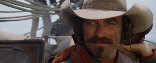 Warum der Film an der Kinokasse versandete, ist leicht erklärt. Das Budget lag grob um die zwanzig Millionen Dollar, eingespielt wurden kaum mehr als einundzwanzig. Die Kritiken waren nicht positiv, um einen Hype zu erzeugen. Und das Timing war miserabel. Praktisch zeitgleich mit Costners Der mit dem Wolf tanzt war das Interesse am großen Western-Drama einfach gedeckt. Zudem tat sich die Vermarktung schwer, weil der Film weder reiner Abenteuerstoff noch ernstes Historienstück war. Für viele Zuschauer war’s scheinbar zu viel dazwischen. Handwerklich dagegen überzeugt der Film besonders. Über Eggbys Kameraarbeit haben wir bereits kurz gesprochen. Herausragend ist aber auch die Filmmusik von Basil Poledouris. Er steuert einen Score bei, der Abenteuer spürbar macht, ohne martialisch zu werden. Man fühlt sich an die leichten Kompositionen von Die glorreichen Sieben erinnert und bekommt über den Score viel von der Tonalität des Films vermittelt. Action und Schusswechsel wirken geerdet, schwer und gefährlich. Wincer legt zudem einen Schwerpunkt auf die akkurate Darstellung der Waffen und wie sie benutzt werden – mit besonderem Fokus auf Quigleys imposante Sharp-Flinte. Ihre Optik, Mechanik und enorme Reichweite lassen diese sie zu einem eigenen Charakter werden. Auch dass Quigley sein Gewehr wie selbstverständlich für andere Zwecke einsetzt, zeigt die enge Beziehung des Helden zu seinem Handwerkszeug. Eine wohltuende Besonderheit der Inszenierung ist, dass Wincer den Gebrauch von Waffen, bei aller Akribie der Darstellung, nicht glorifiziert. Waffen waren notwendig, um sich und die Menschen, die einem etwas bedeuteten, zu beschützen. Beispielhaft ist eine Szene, in der Cora sich und ein Baby gegen angriffslustige Dingos mit einem Colt verteidigen muss. Hier inszeniert Wincer den Ablauf des Schießens und seine Folgen als einen brutalen und mechanisch schwer durchzuführenden Akt auf Leben und Tod. Kleine kontroverse Randnotiz: Entgegen der differenzierten Darstellung der Waffennutzung im Film ist Tom Selleck seit seinem achten Lebensjahr Mitglied in der National Rifle Association (NRA) und war zwischen 2005 und 2018 in deren Vorstand aktiv. Nachdem sein Freund Charlton Heston von diesem Posten zurückgetreten war, übernahm er sogar auch die Rolle des NRA-Sprechers.